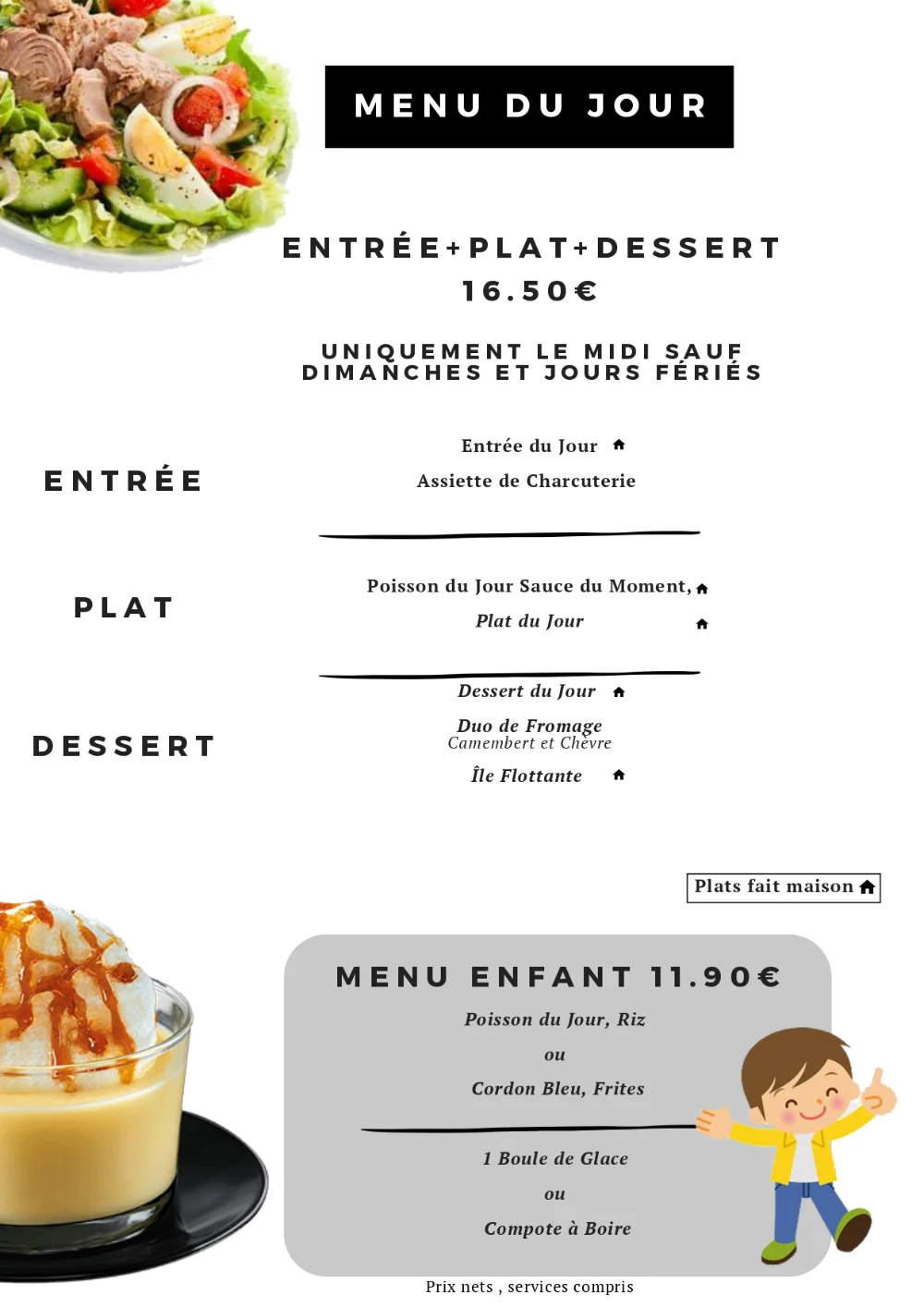 Nous vous informons également que le restaurant est fermé les jeudi et dimanche soir ainsi que le vendredi toute la journée d’Octobre à Juin . Ouvert tous les jours en Juillet et Août